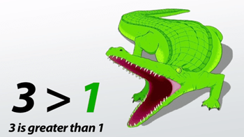 Crocodile eats the bigger number using the signs correctly between two values, then between 2 sums, then with.